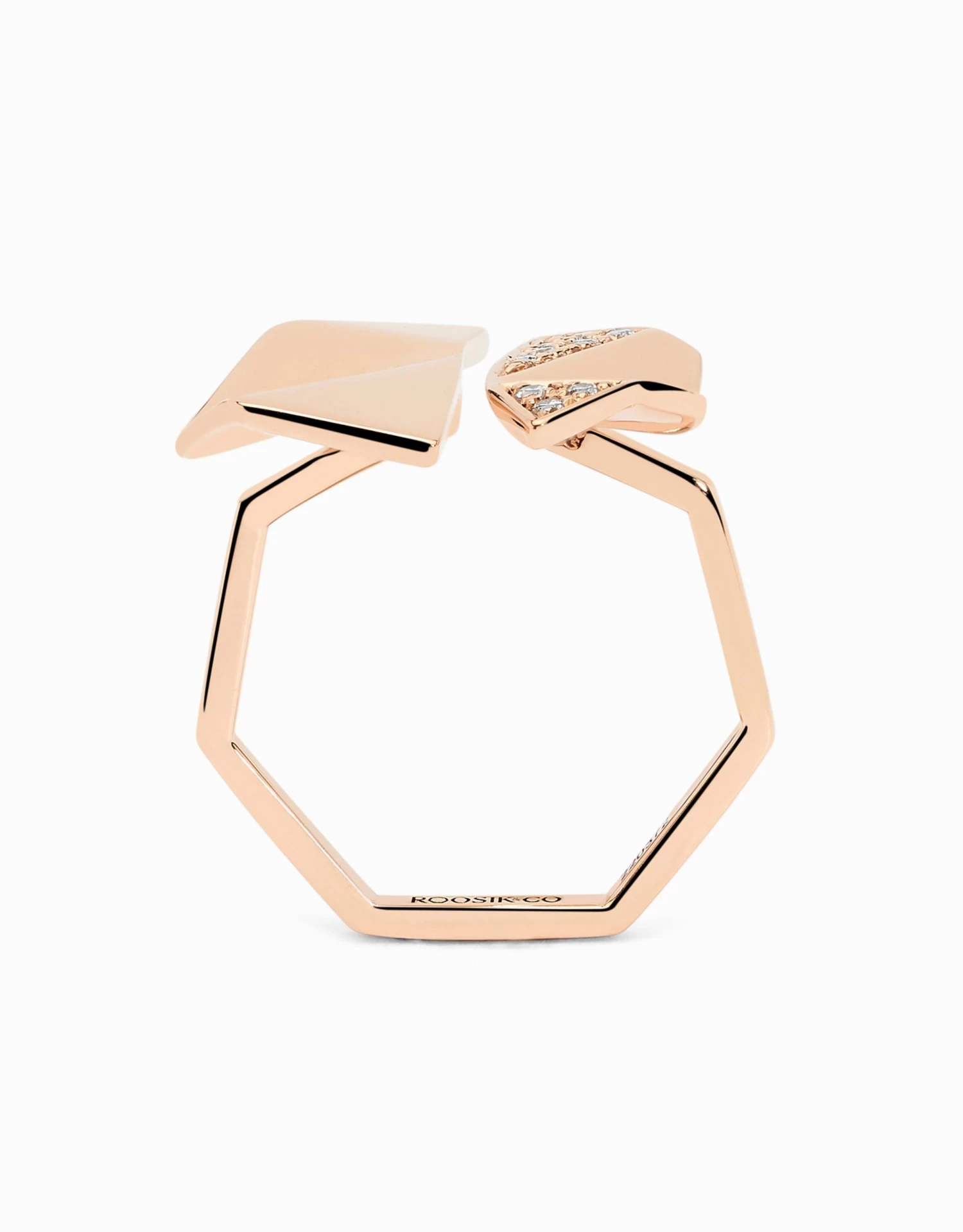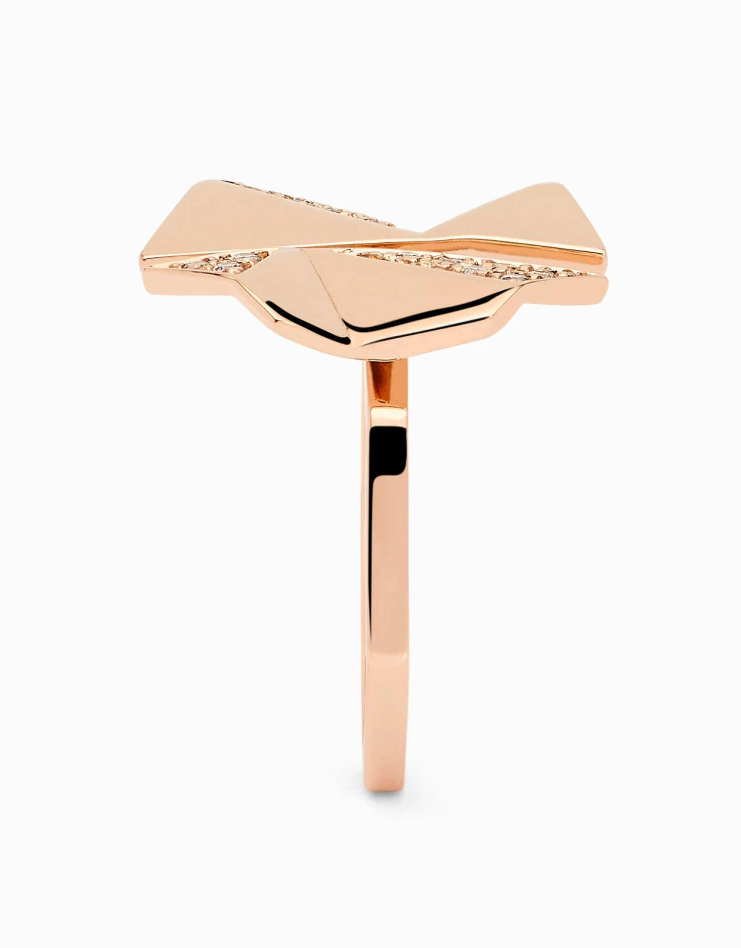 Els diamants juguen a il路luminar alguns dels plecs d’aquesta versi贸 de l’anell Mosaik. La calidesa de l’or groc o rosa juntament amb la blancor dels diamants de triple excel路l猫ncia, fan d’aquesta pe莽a una joia sofisticada, per貌 alhora atrevida. Encantar脿 a qui desitgi lluir un anell original sense perdre l’eleg脿ncia i l’encant que caracteritza la joieria m茅s fina.