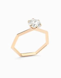 ANELL DE COMPROM脥S SOLITARI HEPTAGONAL D’OR ROSA
