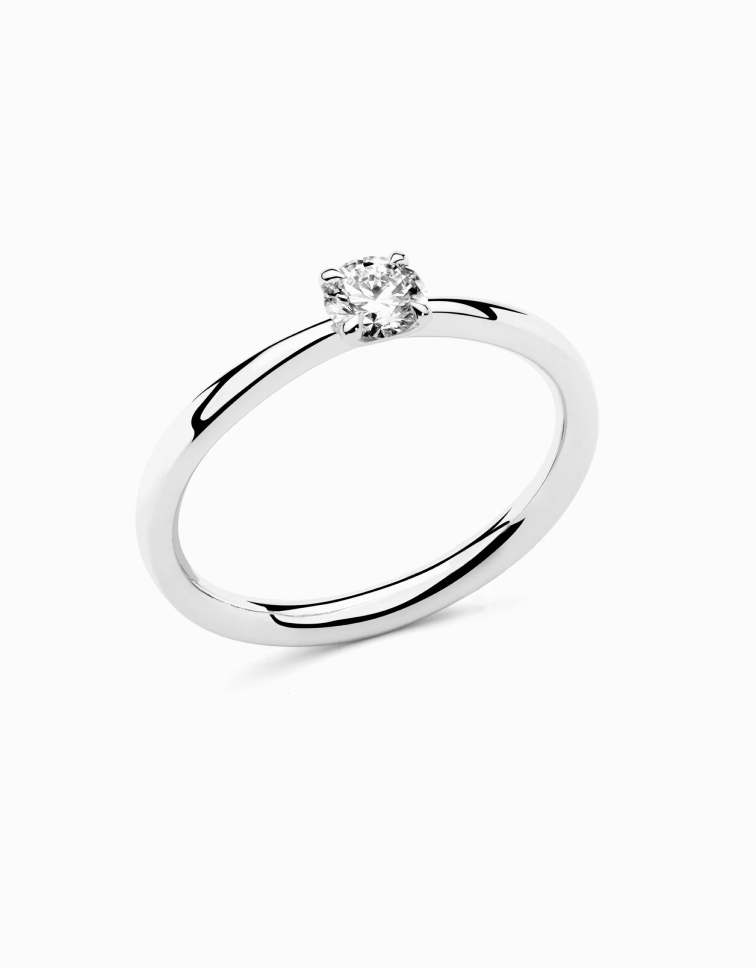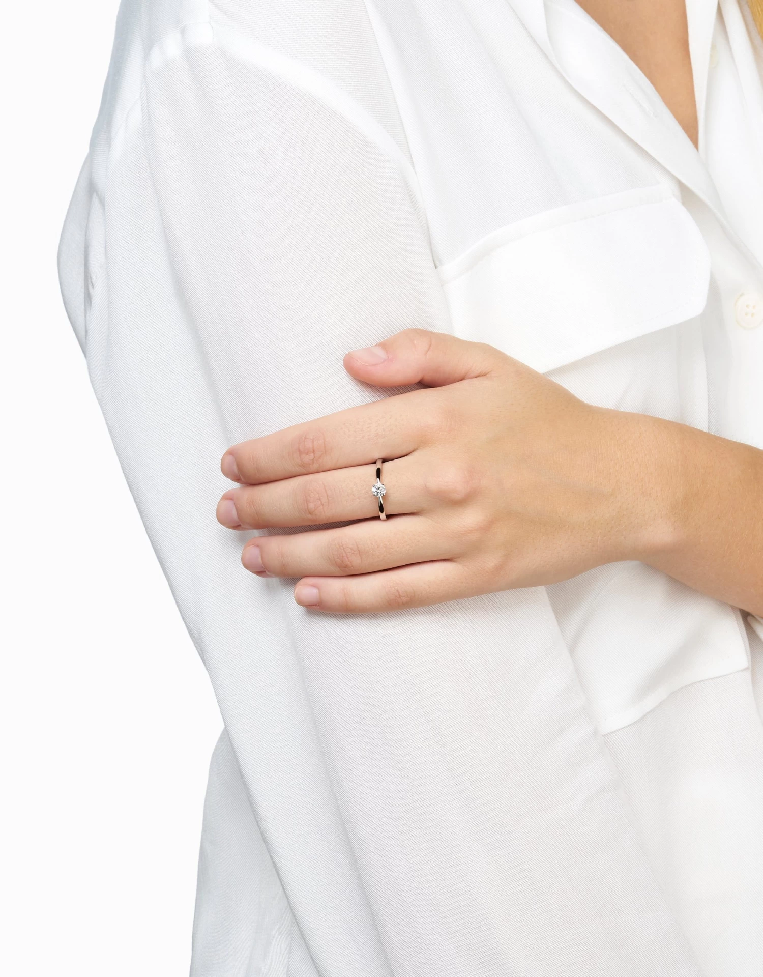 Un solitari com anell de comprom铆s de la col路lecci贸 Eternal de Roosik&Co. En Jordi Rosich聽聽-joier, clavador, gemm貌leg i dissenyador de la marca-, ha redu茂t al m脿xim l’al莽ada del solitari per aconseguir el confort i la subtilesa de la joia. El diamant 茅s de 0,30 quirats, color E, puresa VVS2 i triple excel路l猫ncia (tall, simetria i poliment), reflectint el 99% de la llum que rep. Una pe莽a simb貌lica i perfecta per a les dones que estimen la discreci贸 i el refinament.