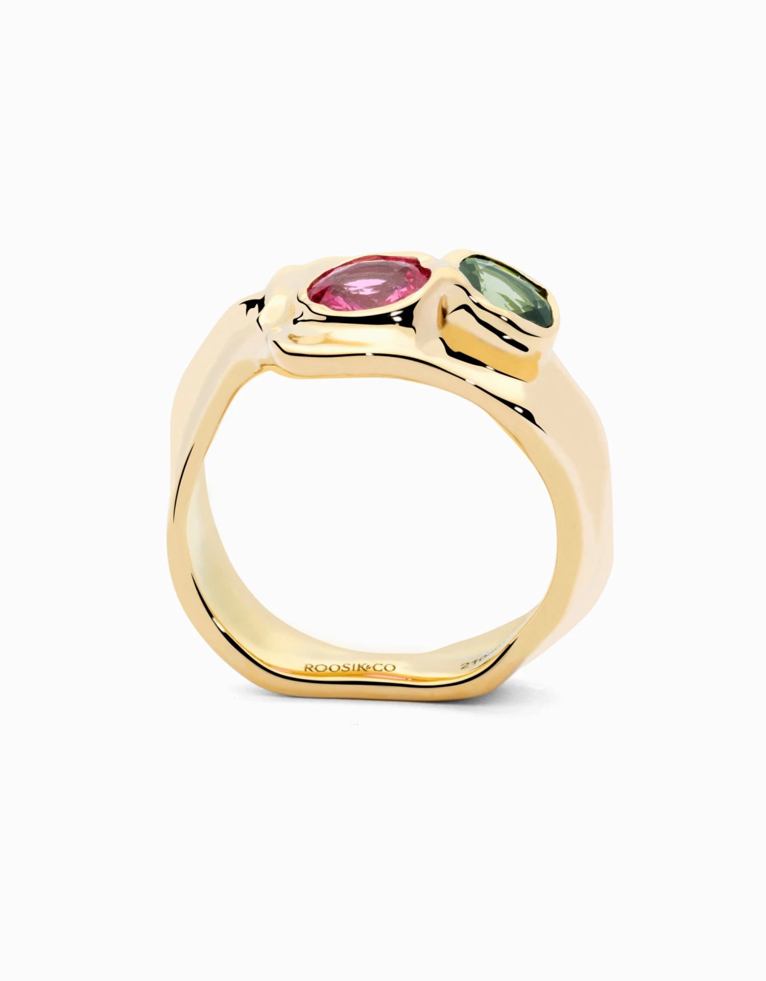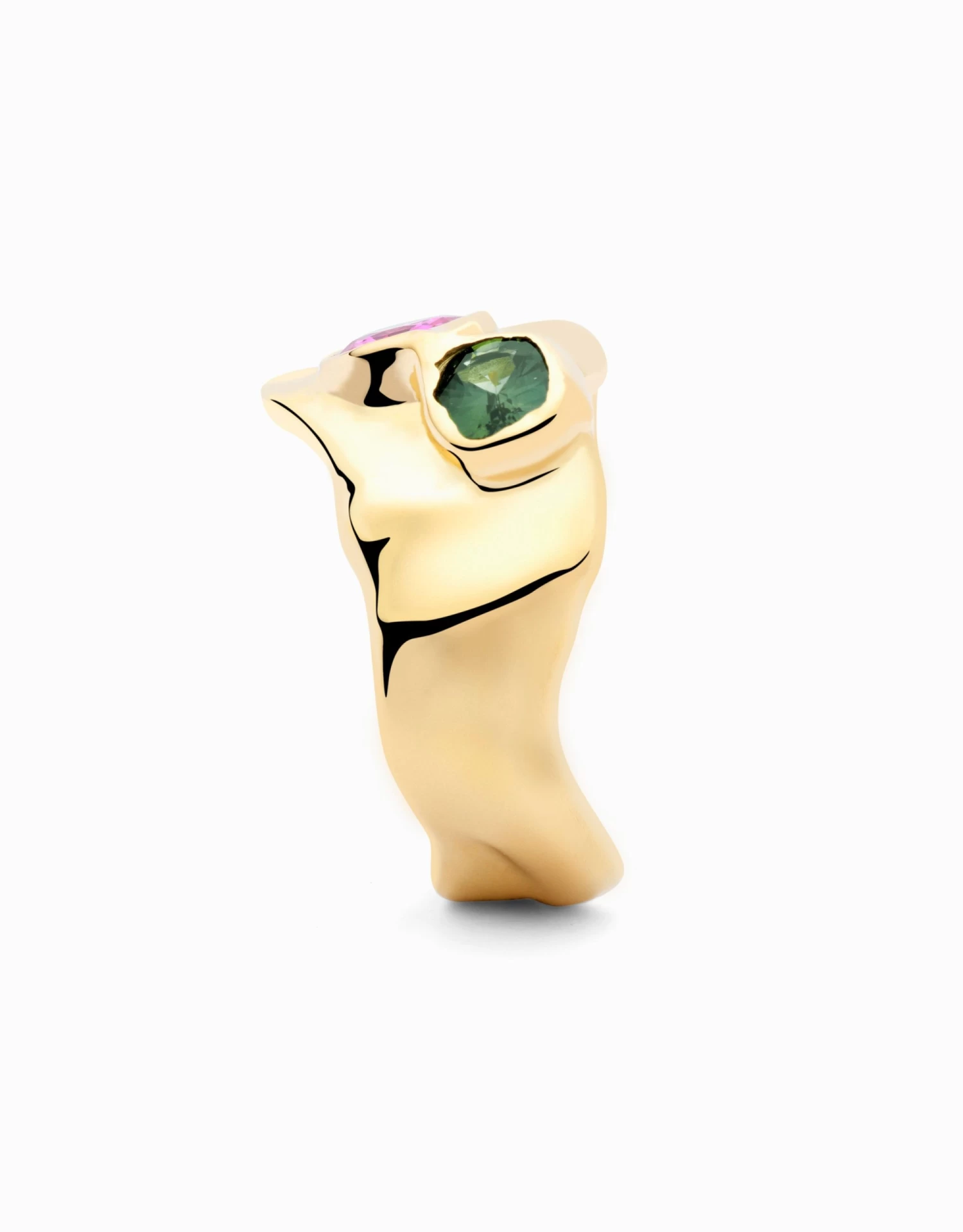 La for莽a de la natura a les teves mans. Una joia d’alt impacte, de formes sinuoses com les dunes daurades i brillants del desert. Al bell mig, un safir verd i un safir rosa, com dos oasis de color, que il路luminen la pe莽a. 脡s una joia 煤nica. Nom茅s n’hem treballat una amb aquesta combinaci贸 de gemmes, ja que 茅s molt rar de trobar en la natura un safir verd i un safir rosa tan bells, d’aquestes propietats 貌ptiques i quirats. Ser脿 per a tu?聽
