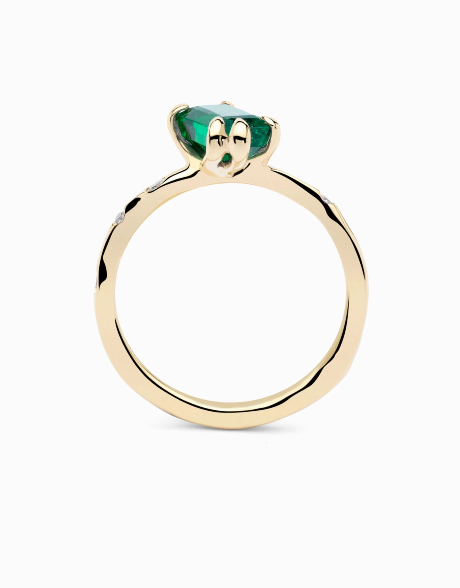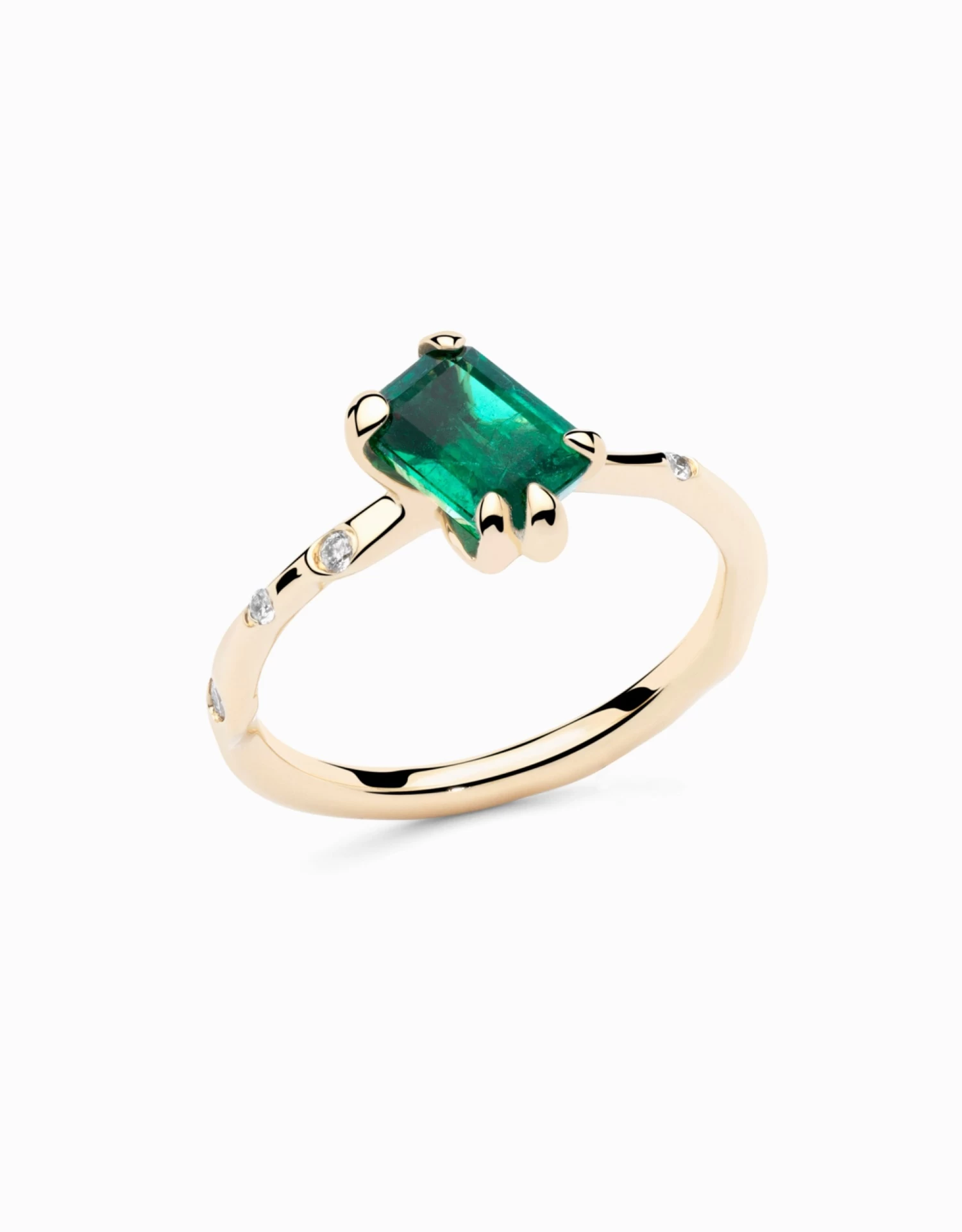 Les maragdes m茅s belles s贸n les que gaudeixen d’un color m茅s intens, com la d鈥檃questa joia de comprom铆s. Les seves inclusions la fan 煤nica i exclusiva, i 茅s una prova de l鈥檃utenticitat de la gemma respecte les maragdes sint猫tiques o d鈥檌mitaci贸. Et convidem a endinsar-te en els jardins d鈥檃questa espectacular pedra preciosa verda de m茅s d鈥檜n quirat i que Jordi Rosich, joier i dissenyador de Roosik & Co, ha treballat en un anell d鈥檕r groc amb formes org脿niques. Els diamants, col路locats de manera espont脿nia sobre la montura, aporten llum i contrast a una joia de gran calidesa capa莽 d鈥檈xpressar el millor dels sentiments.