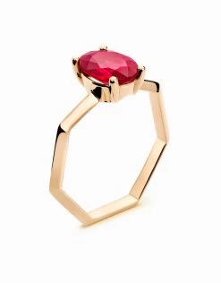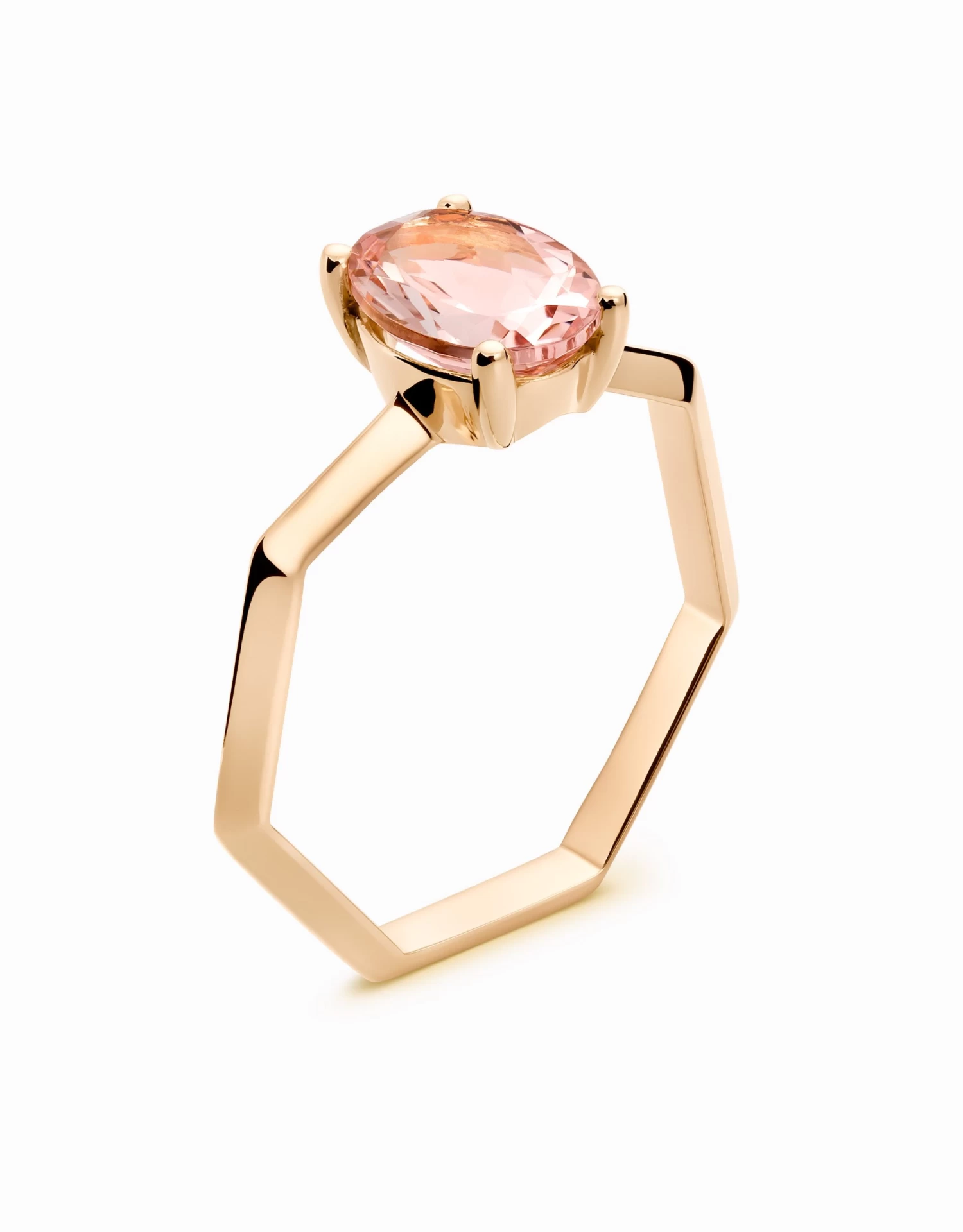 ANELL D’OR ROSA HEPTAGONAL I PEDRA PRECIOSA