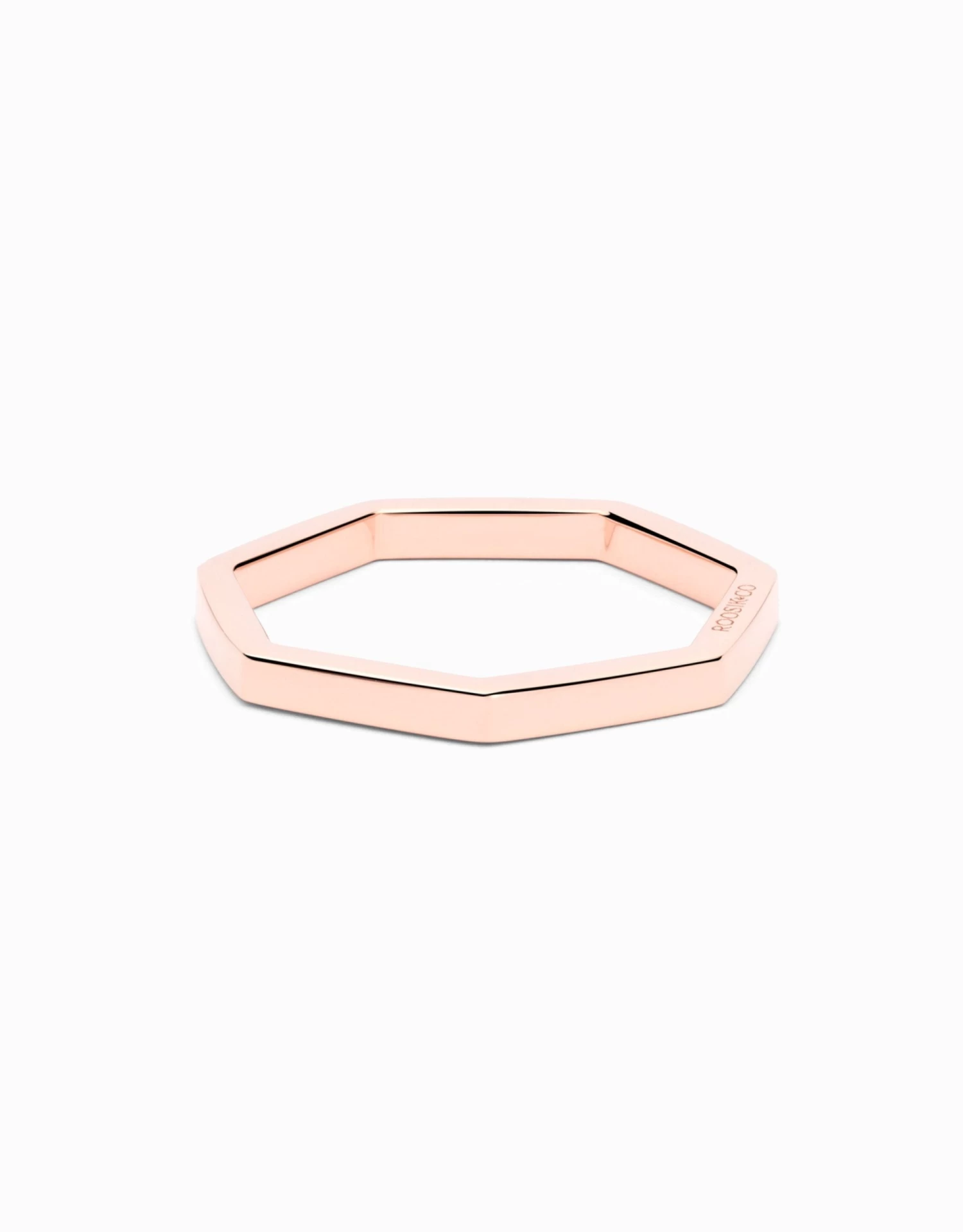 En aquesta joia, Jordi Rosich ha convertit l’heptàgon, el símbol icònic de la marca, en un anell de gran originalitat i força, ideal per a una dona valenta i emprenedora, a qui li agradin les peces poc habituals. És una joia de disseny únic i exclusiu i d’una gran comoditat. És molt versàtil alhora de combinar-lo amb anells heptagonals d’altres colors, com l’or blanc i el rosa, o també amb les seves opcions amb diamants a una o quatre bandes.