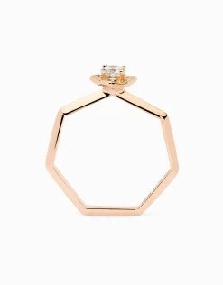 Una petita rosa, un diamant envoltat de p猫tals brillants. Per貌, fixa-t’hi. Els p猫tals formen un hept脿gon, la figura ic貌nica de Roosik & Co! I estan farcits d’un pav茅 de diamants en talla brillant i triple excel路l猫ncia que li sumen tota la blancor i lluminositat possibles. La corola de la flor, a m茅s, reposa sobre un anell d’or rosa i en forma d’hept脿gon. Veur脿s que les l铆nies rectes i miniamalistes cediran tot el protagonisme a la flor quan la joia llueixi a les teves mans. Pots escollir si desitges el diamant central en mida petita, mitjana o gran. 脡s una pe莽a molt vers脿til, adient per a combinar-la amb d’altres joies de disseny minimalista i amb diamant. Fins i tot, aquest anell pot convertir-se en la teva joia de comprom铆s.