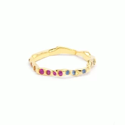 Els colors de l’arc de Sant Mart铆 floreixen en l’ic貌nic hept脿gon de Roosik & Co. La seq眉猫ncia de safirs roses, verds, grocs i blaus juntament amb l’or groc crea un bonic joc de contrastos que encantar脿 a dones contempor脿nies i de gustos originals. Es tracta d’un anell que no 茅s rod贸 ni sim猫tric, per貌 alhora 茅s molt c貌mode de dur gr脿cies a les seves formes arrodonides i org脿niques que abra莽aran amb cura el teu dit.