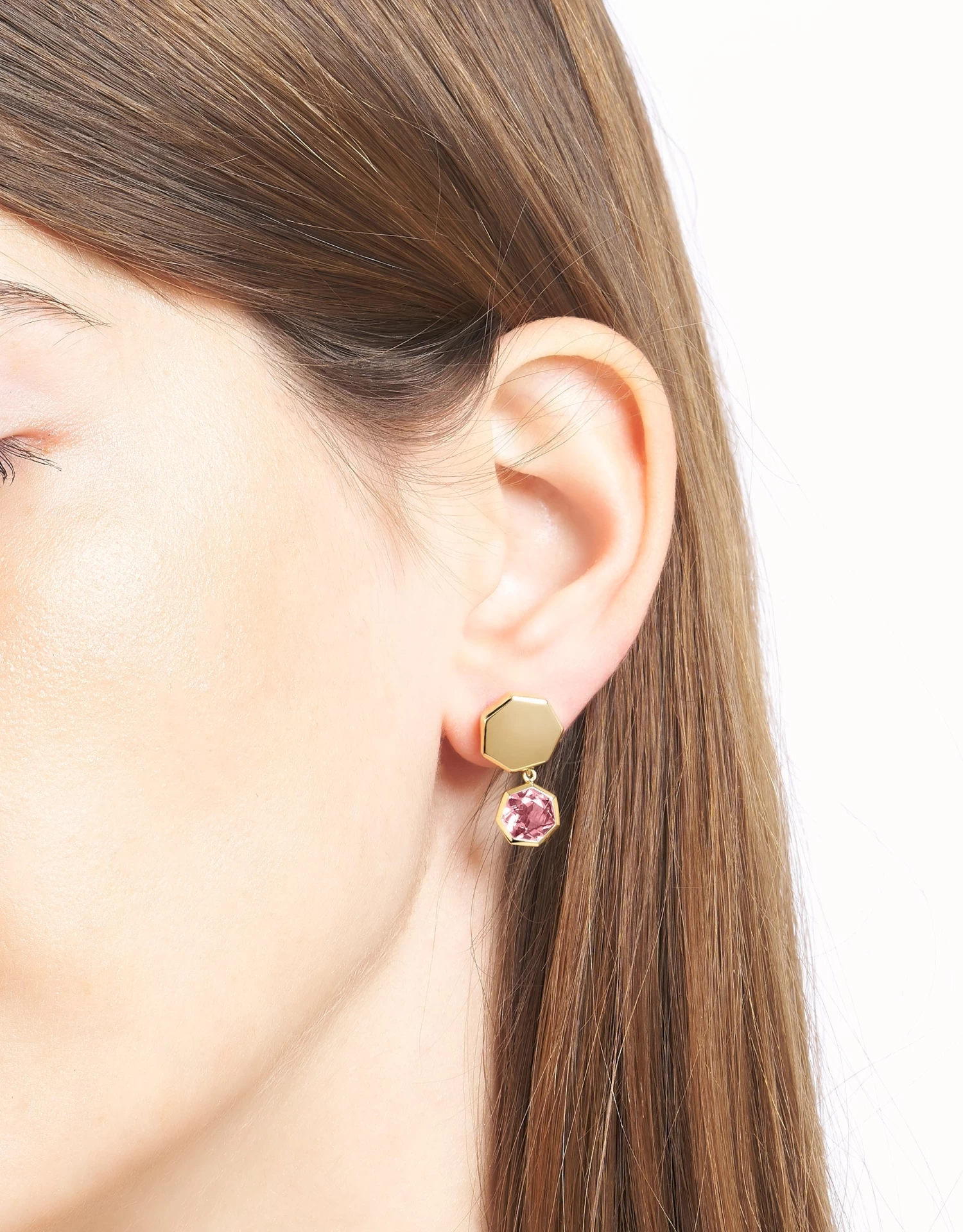 ARRACADES LLARGUES HEPTÀGON AMB QUARS ROSA I EN OR GROC