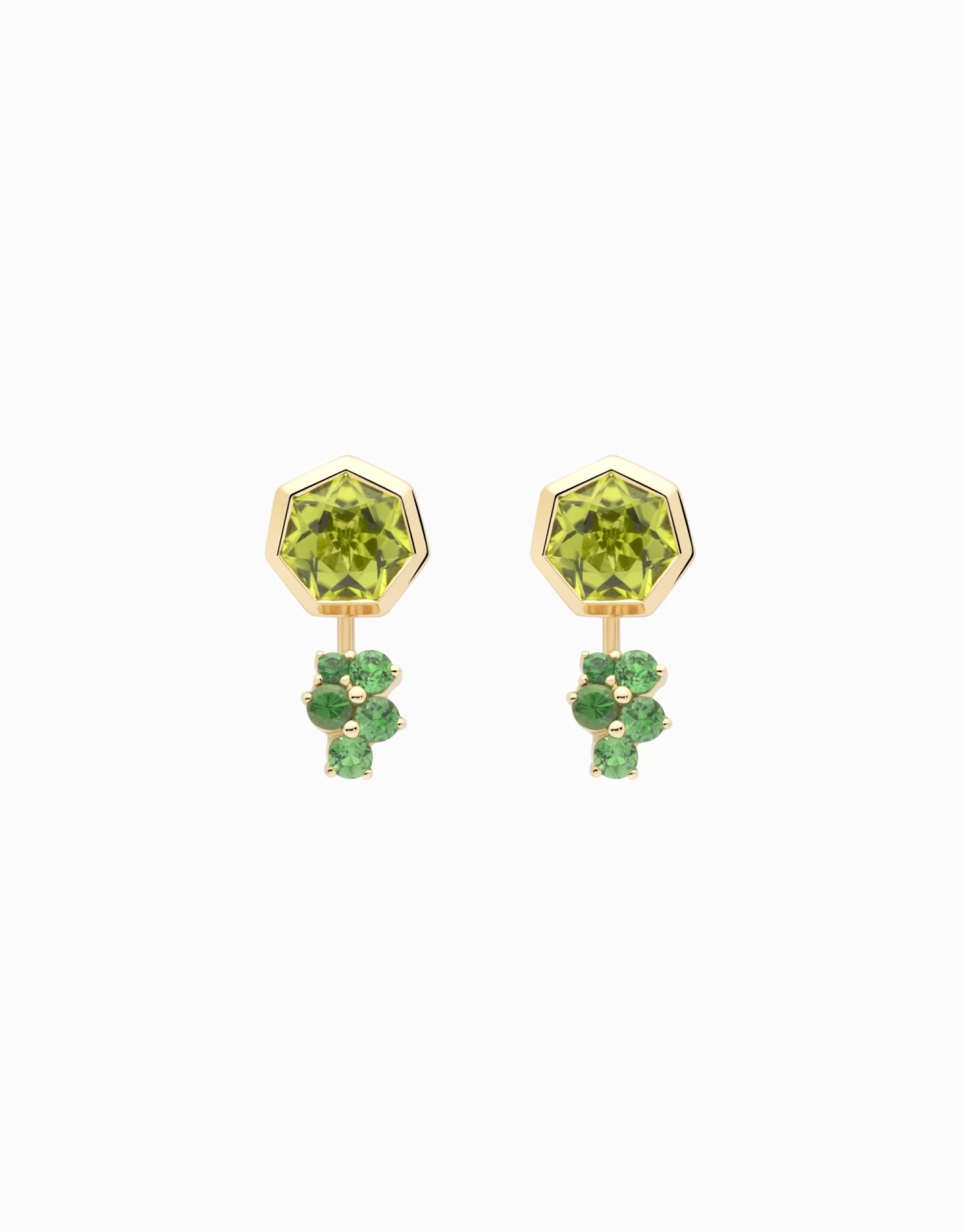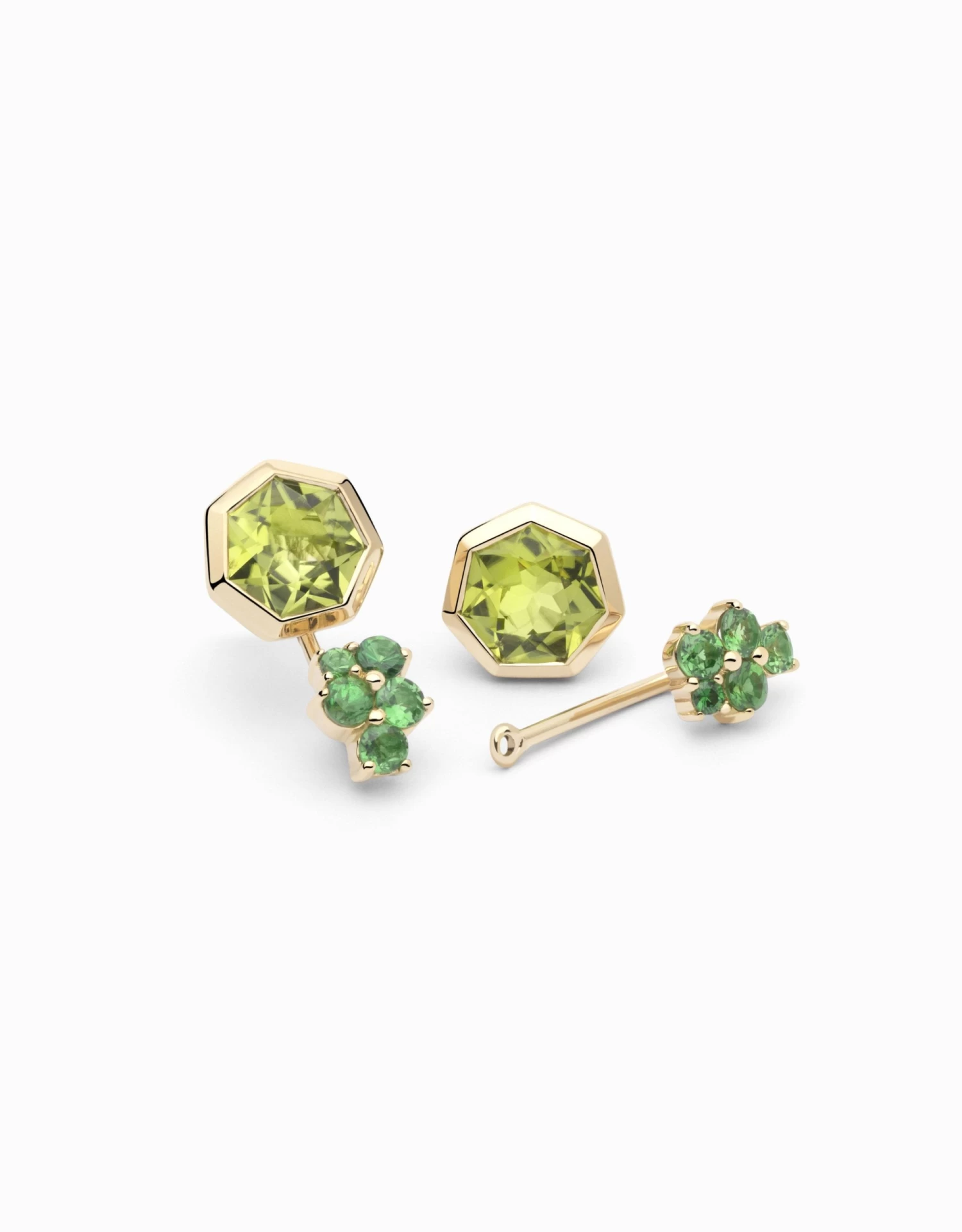 ARRACADES LLARGUES AMB PERIDOT I TSAVORITES EN OR GROC