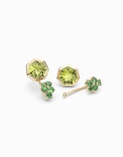 En aquest cas, Jordi Rosich -joier, clavador, gemmòleg i dissenyador de Roosik&Co-, combina dos Peridots heptagonals amb deu tsavorites d’un verd intens. El resultat és una joia de contrast únic i molt especial. Aquestes arracades són, a més, dues en una. Durant el dia o en ocasions informals poden lluir només amb la peça heptagonal, i, en looks més sofisticats, nocturns o festius, s’hi afegeix la peça florida amb les tsavorites. En aquestes arracades de disseny exclusiu de Jordi Rosich per a Roosik&Co, el peridot llueix en talla heptagonal, una talla exclusiva de Roosik&Co, que aporta una reflexió de la llum única i molt bella a la gemma. Disponible amb d’altres combinacions d’or i pedres precioses.