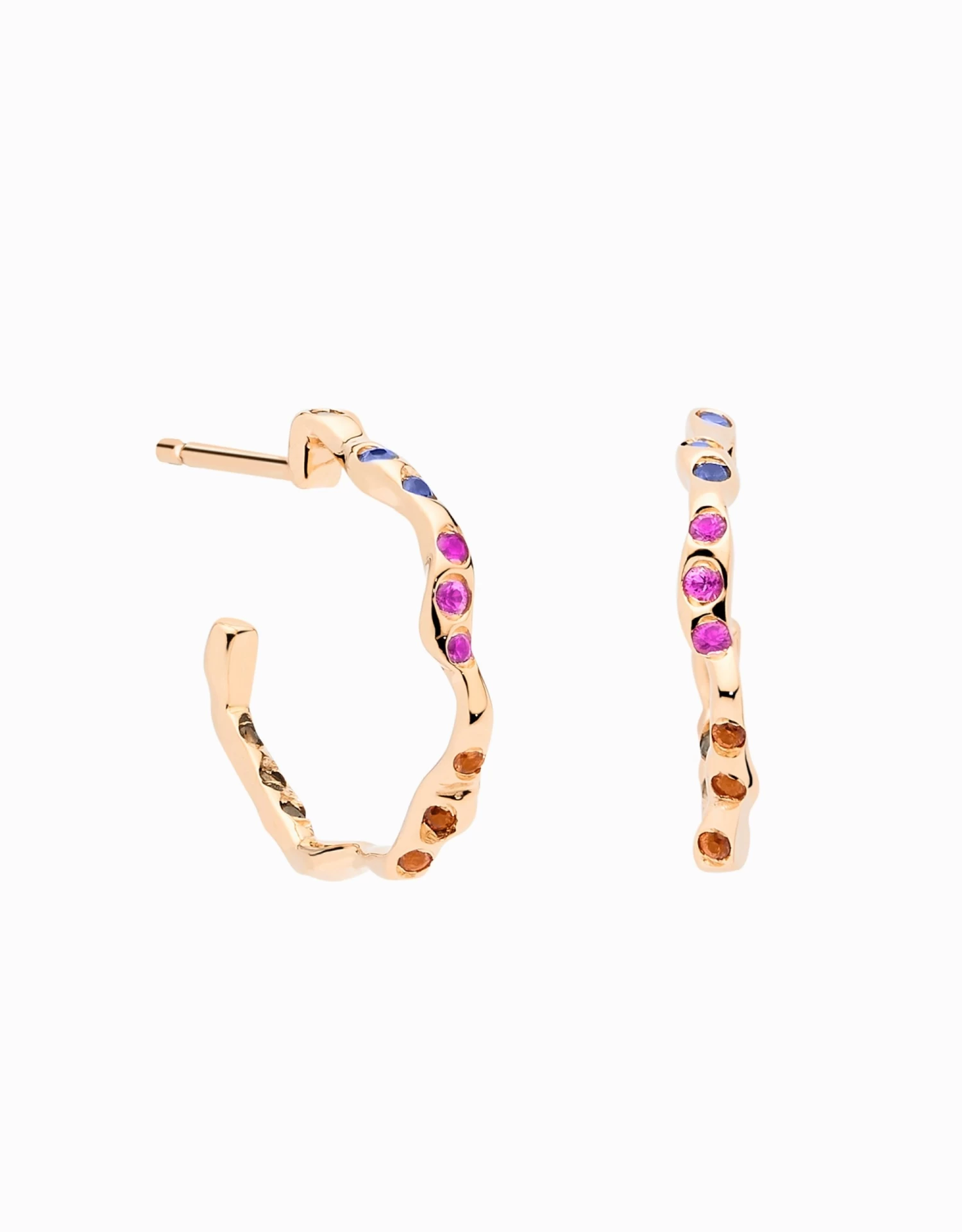 Un jard铆 de safirs a les teves orelles. Els safirs m茅s populars s贸n els blaus, per貌 Jordi Rosich 茅s un gran amant de les gemmes de colors m茅s rares de trobar en la natura: com els safirs verds, grocs o roses. Imagina’t doncs, com d’especials i alegres s贸n aquetes arracades d’aro en or groc, blanc o rosa i amb safirs de tots els colors. Tamb茅 t’encantar脿 l’anell a conjunt, fes-li un cop d’ull 馃檪