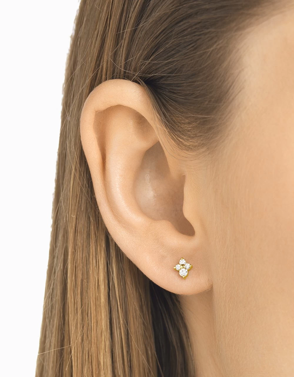 La combinaci贸 d鈥檕r groc i els 4 diamants de mides diferents a cada pe莽a composa un conjunt vibrant i colorista en aquestes arracades inspirades per l鈥檈xuber脿ncia de les flors. L鈥檕pci贸 de treballar aquesta joia amb or groc li aporta la lluminositat i eleg脿ncia de les flors grogues. En qualsevol de les versions, Roosik&Co. hi encasta diamants de talla brillant, color E, puresa de grau VVS1 i triple excel路l猫ncia, amb un total de 0,21 quirats.
