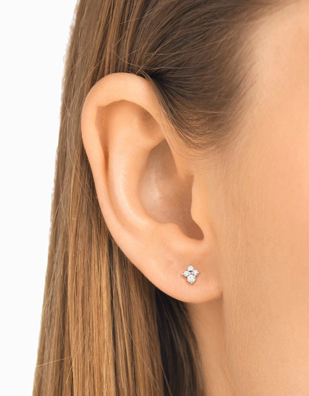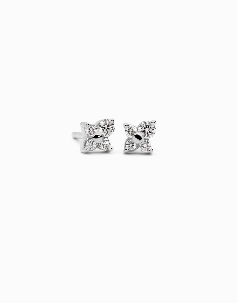 La combinaci贸 d鈥檕r blanc i els 4 diamants de mides diferents a cada pe莽a composa un conjunt vibrant i delicat en aquestes arracades inspirades per l鈥檈xuber脿ncia de les flors. L鈥檕pci贸 de treballar aquesta joia amb or blanc li aporta la lluminositat i eleg脿ncia de les flors blanques. En qualsevol de les versions, Roosik & Co hi encasta diamants de talla brillant, color E, puresa de grau VVS1 i triple excel路l猫ncia, amb un total de 0,18 quirats.
