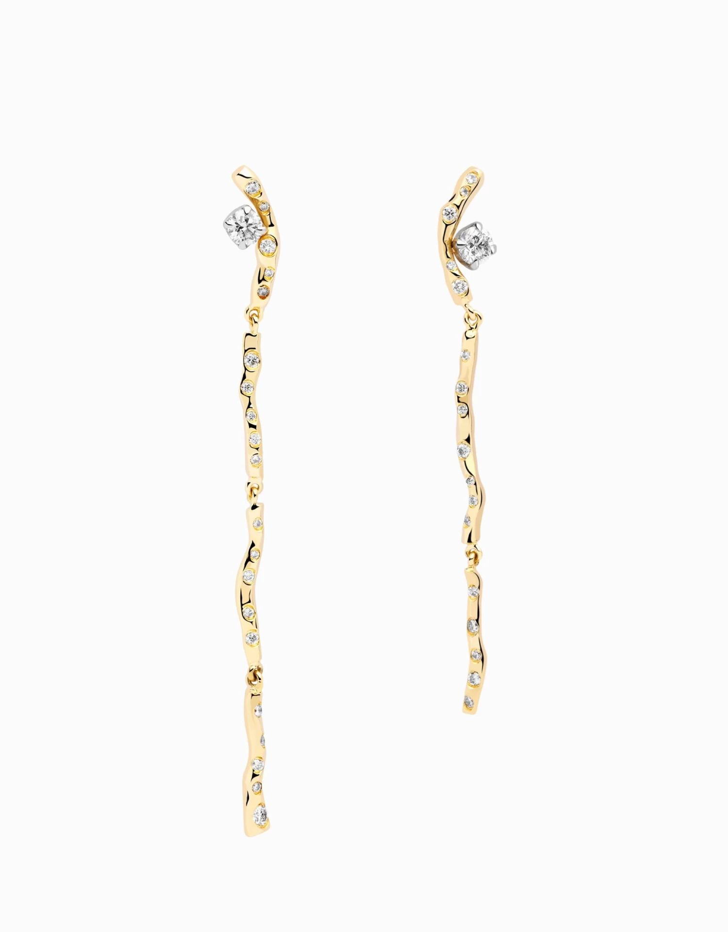 Gotes de rosada que reposen sobre la tija d’una flor. Jordi Rosich és un gran amant de la natura; sovint s’inspira en les imatges bucòliques del món natural per a crear joies de gran romanticisme, carregades d’emoció. Les arracades Nature Stem són, sens dubte, una d’aquestes peces sorprenents i que es convertiran en el pol d’atracció de totes les mirades. El contrast de l’or groc i els reflexes de les seves formes sinuoses i orgàniques, juntament amb els diamants de triple excel·lència, aportaran calidesa i gran lluminositat al rostre de qui les porti.