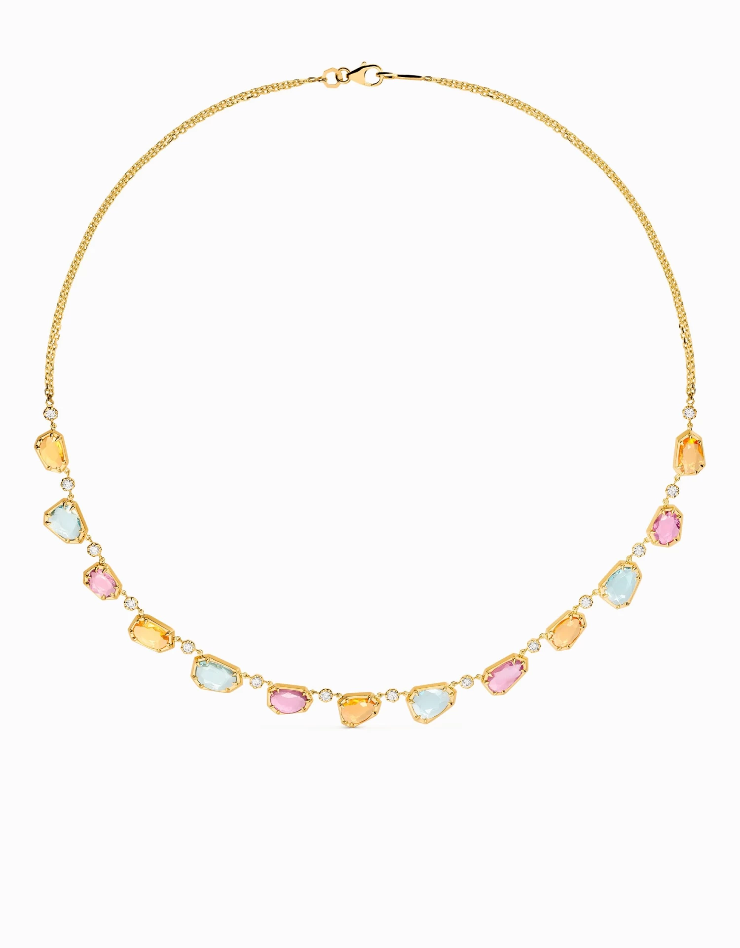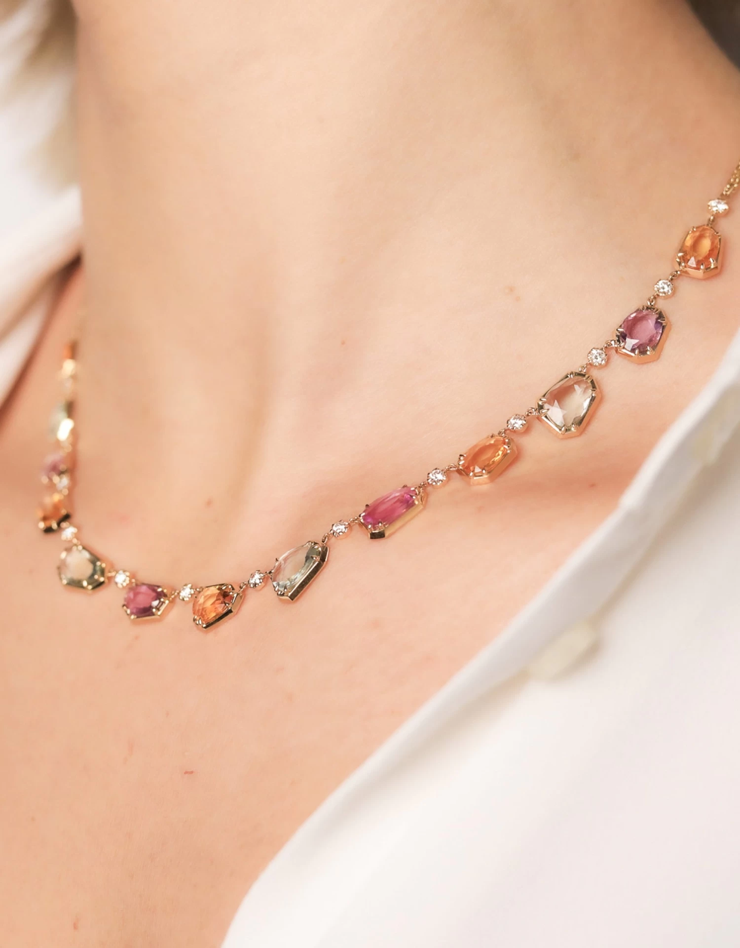 El Collaret Gallery 茅s una pe莽a d’edici贸 煤nica que combina harmonia i espectacularitat. Una joia que destaca per la seva composici贸 captivadora: els safirs roses, grocs i aiguamarines s鈥檈ntrellacen amb els diamants, creant un joc de contrastos que 茅s alhora extremat i delicat.