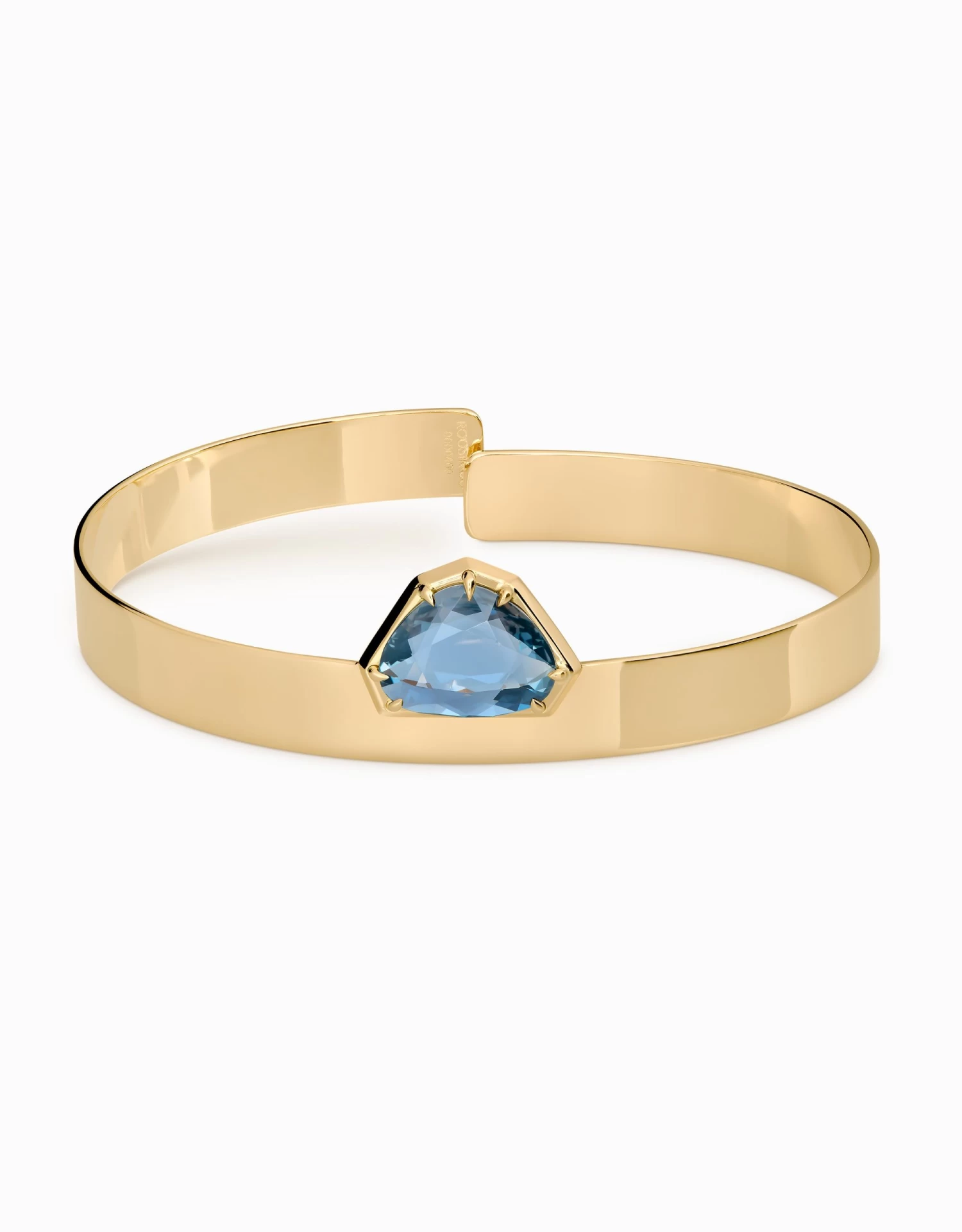L鈥橢sclava Gallery amb safir blau 茅s una celebraci贸 de la bellesa singular i l鈥檈leg脿ncia atemporal. Forjada en or groc polit, la seva superf铆cie lluminosa actua com un mirall que reflecteix la llum amb cada moviment.