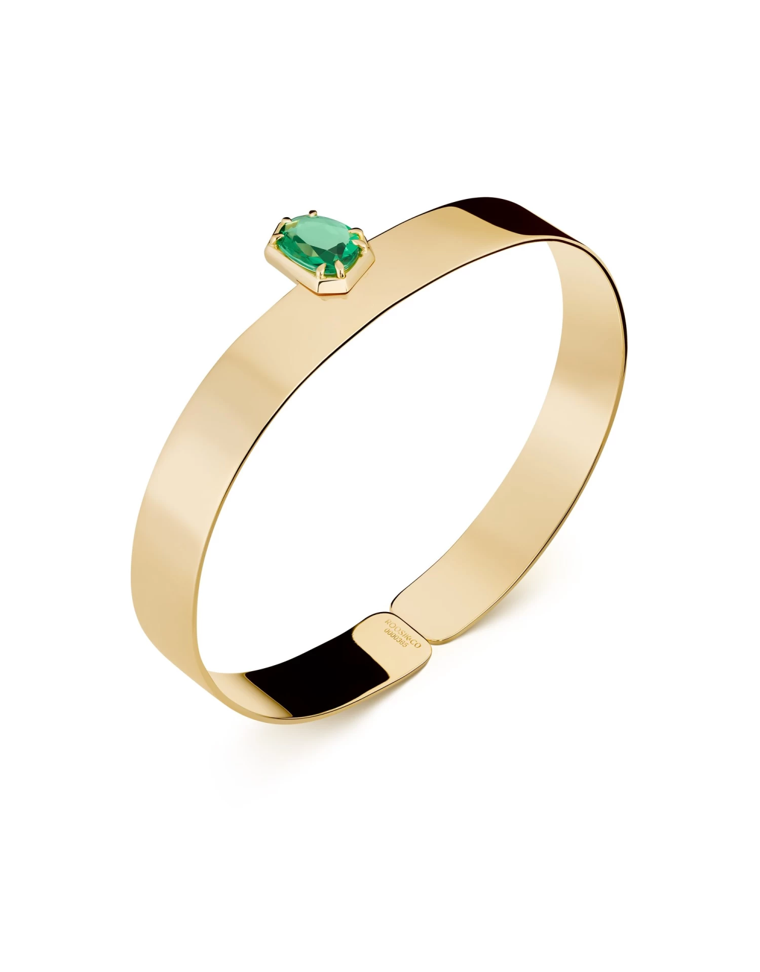 L鈥橢sclava Gallery amb tsavorita verda 茅s una pe莽a 煤nica que connecta amb la for莽a de la natura i la sofisticaci贸 del disseny. Forjada en or groc polit, la seva superf铆cie lluminosa reflecteix la llum com un mirall, creant un joc de brillants que atrapa la mirada.