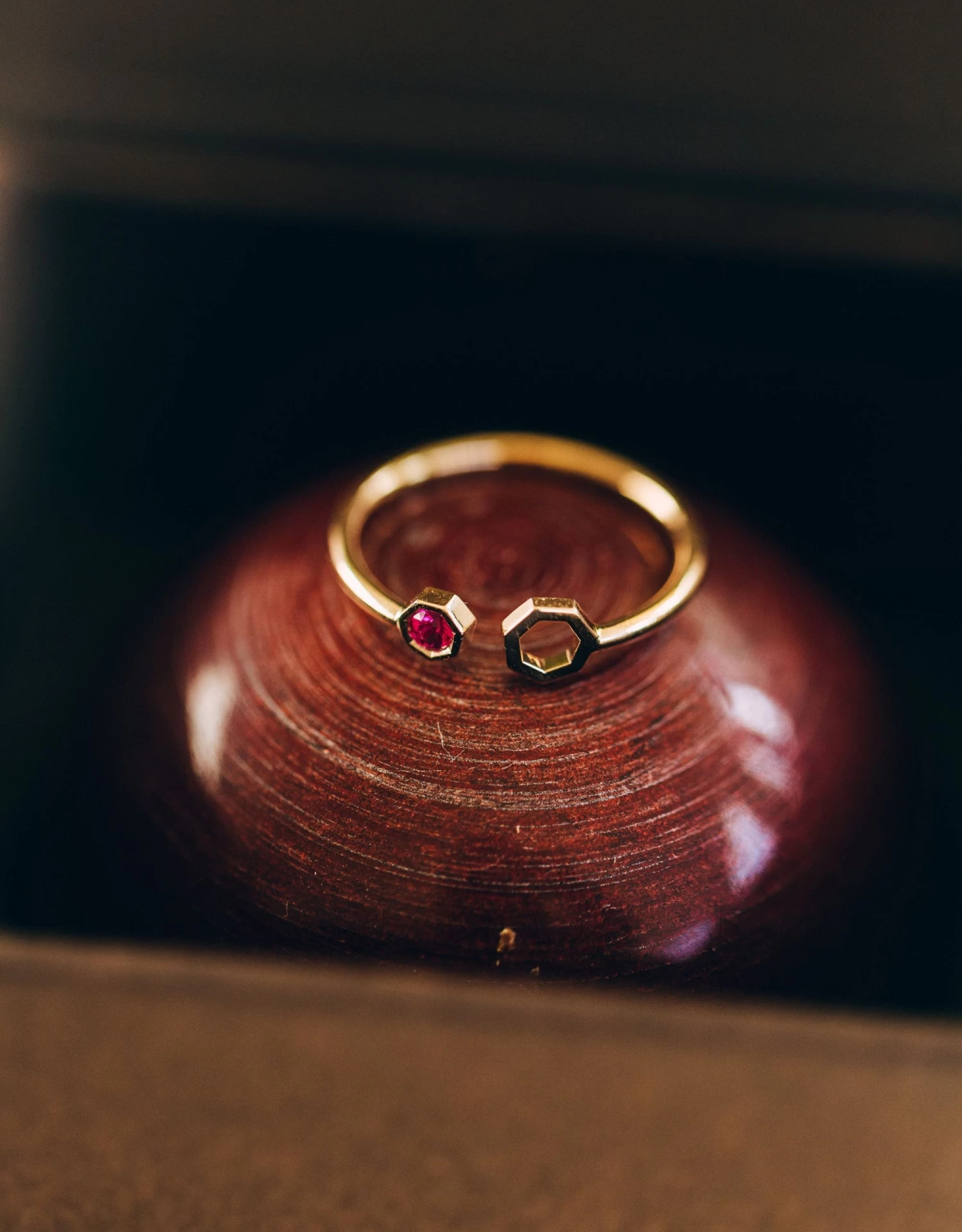 L鈥檃nell Hepta Puzzle 茅s una joia molt simb貌lica. 脡s un anell obert format per dues parts: una pedra preciosa, un rob铆, i un hept脿gon d鈥檕r. Si les ajuntem, encaixen a la perfecci贸, per貌 alhora mantenen la seva ess猫ncia i personalitat de manera individual. Com tu. Com jo…