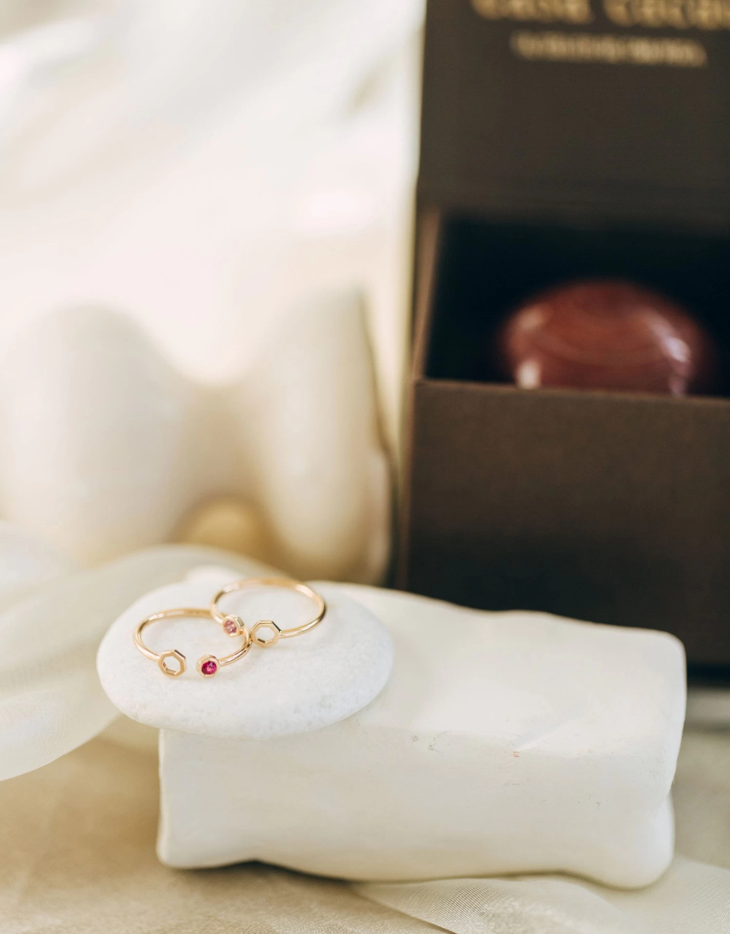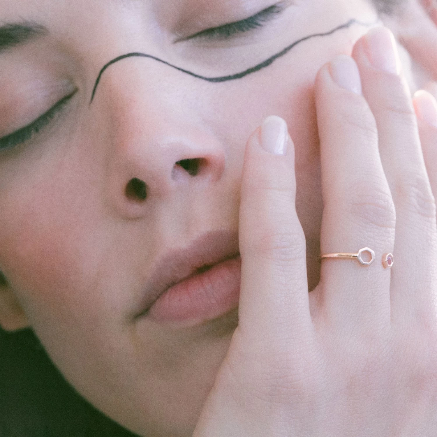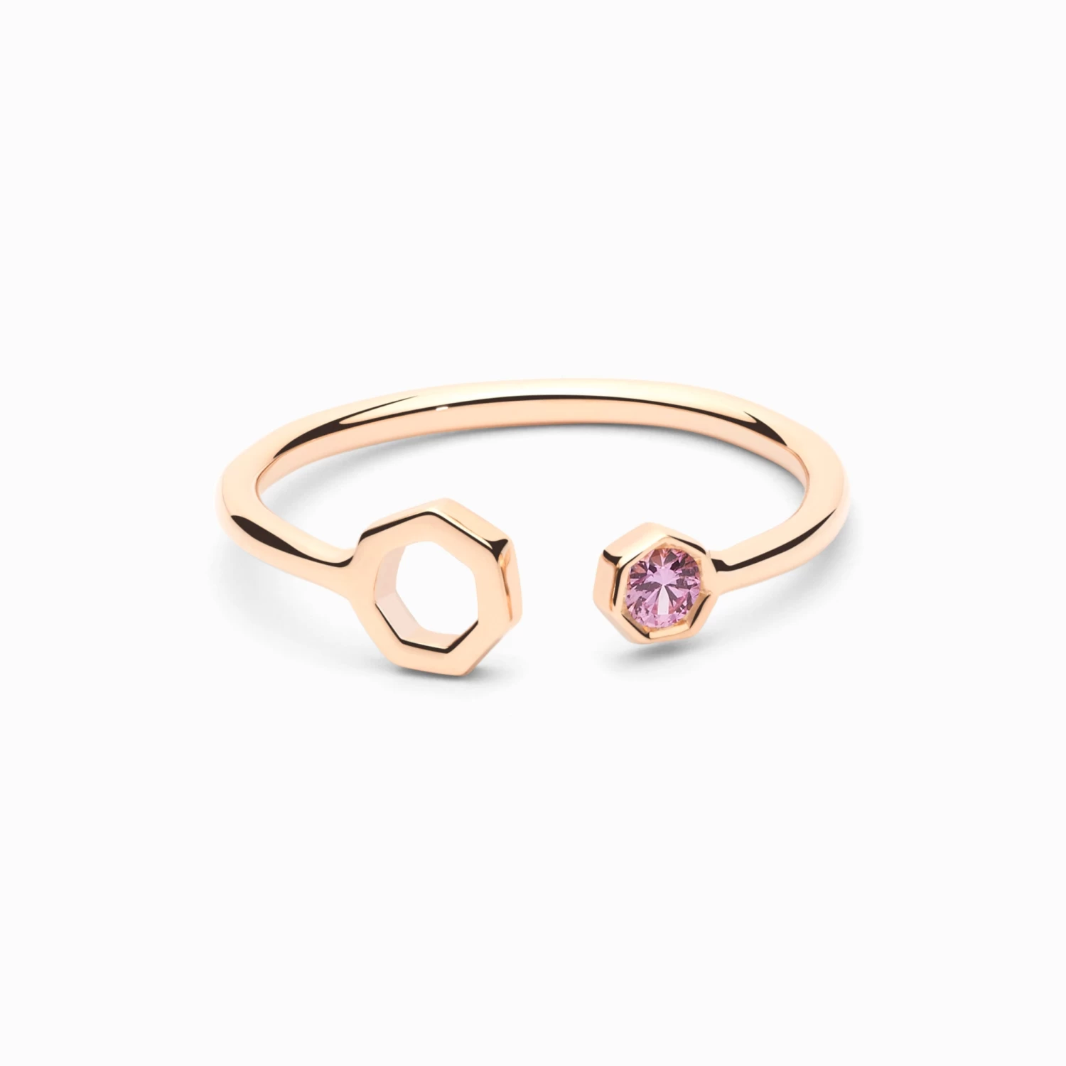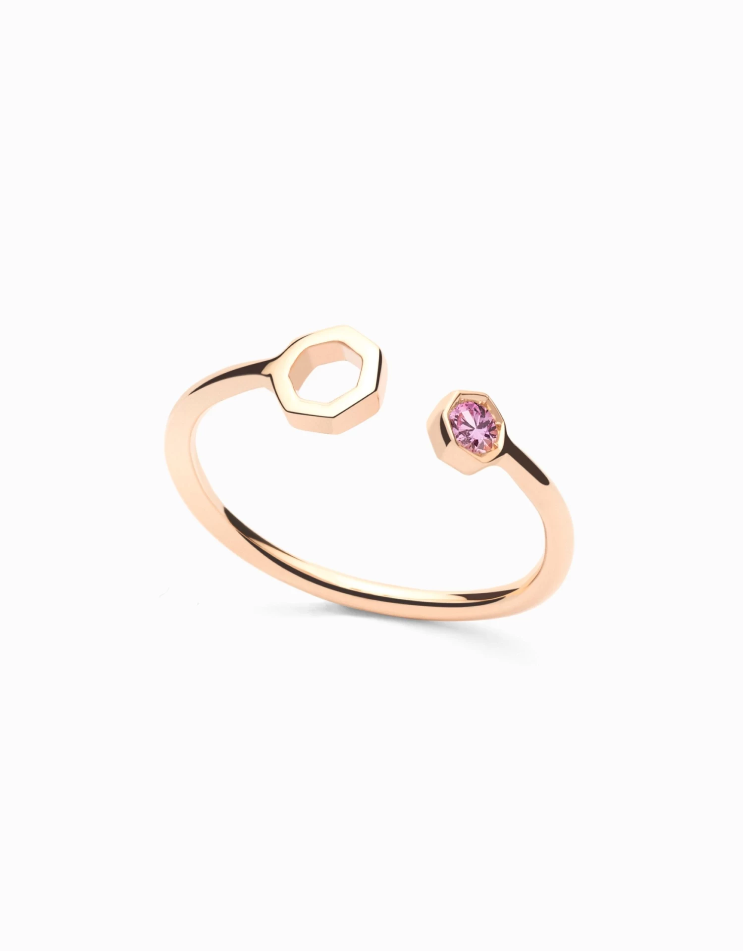 L鈥檃nell Hepta Puzzle 茅s una joia molt simb貌lica. 脡s un anell obert format per dues parts: una pedra preciosa, un safir rosa, i un hept脿gon d鈥檕r. Si les ajuntem, encaixen a la perfecci贸, per貌 alhora mantenen la seva ess猫ncia i personalitat de manera individual. Com tu. Com jo…