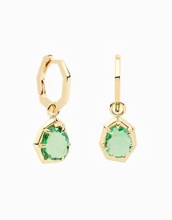 Cap de les pedres precioses que llueixen a les joies de la col路lecci贸 Gallery 茅s igual, tal com passa a la natura: cap fulla ni cap gota d’aigua tenen el seu doble. Les pedres precioses que pengen poden extreure’s de l’aro, de manera que tens dues arracades en una. Pots lluir els aros llisos per al teu dia a dia i quan ho desitgis pots afegir-hi la nota de color.聽