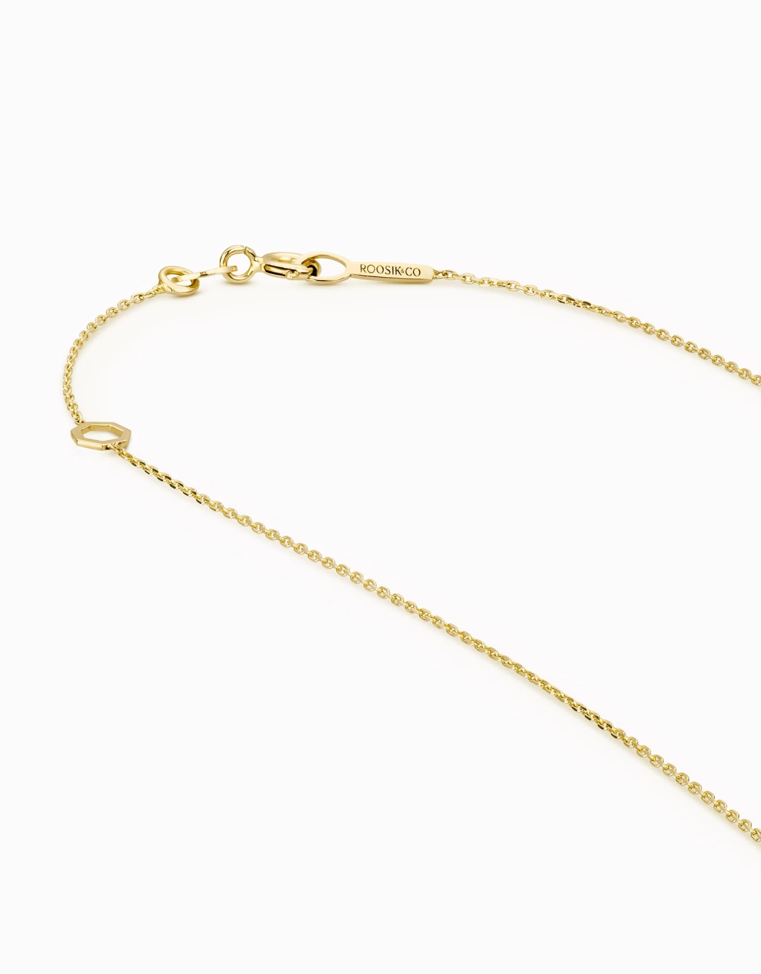 El motiu Heptàgon és la icona corporativa de la marca de joieria d’autor Roosik&Co. A la col·lecció Heptasik, Jordi Rosich -dissenyador i autor de les joies de Roosik&Co.- ha fet del motiu Heptàgon l’eix central de la col·lecció. En aquest cas, l’heptàgon embolcalla un diamant de 0,06ct, color E, grau de puresa VVS1, decisió que converteix aquest penjoll en un complement molt especial que encaixarà perfectament amb una dona contemporània. El penjoll amb motiu Heptàgon i diamant es treballa en or groc, rosa i blanc.
