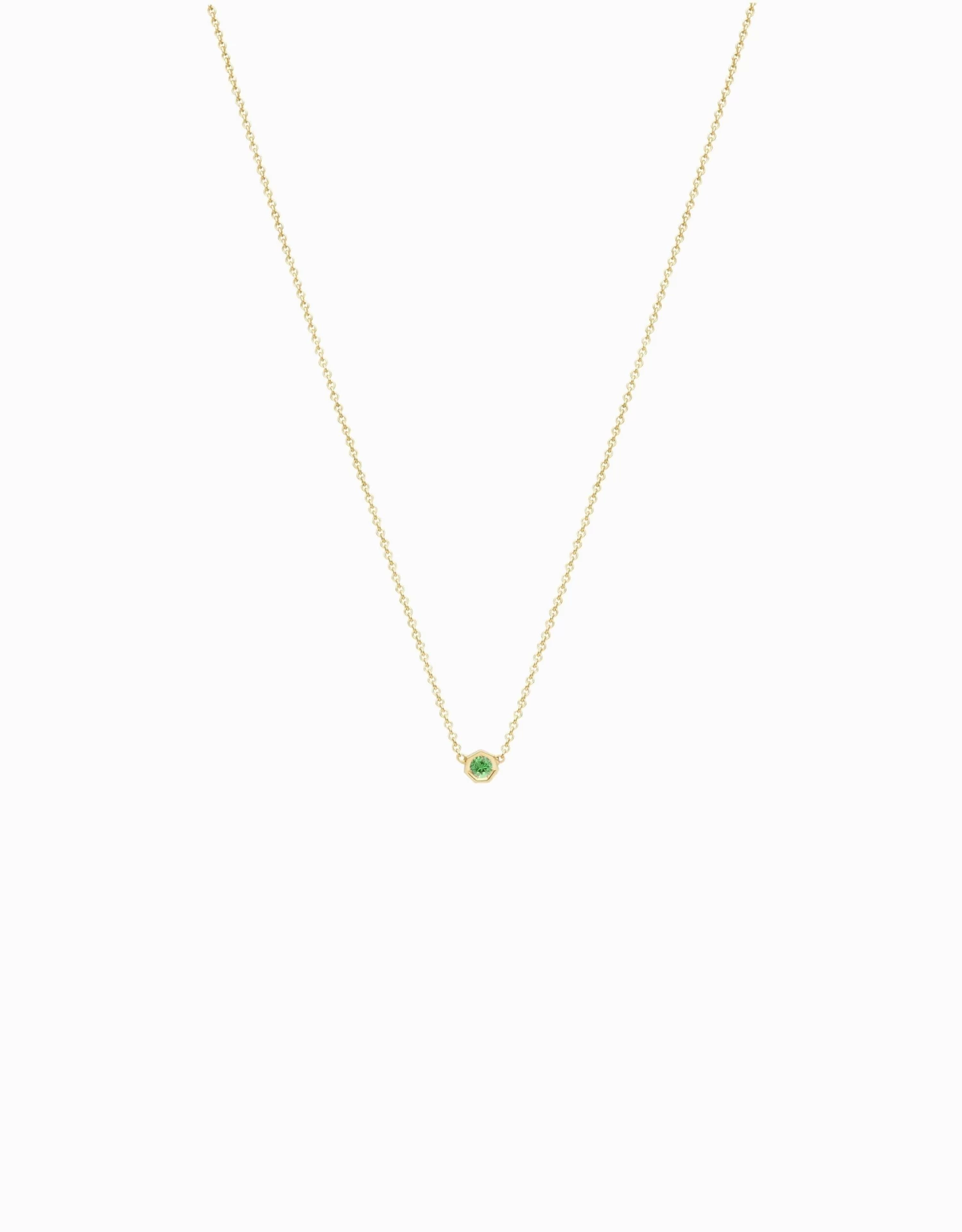 En aquest penjoll, una preciosa maragda d鈥檜n verd intens s鈥檈mbolcalla d鈥檜n hept脿gon d鈥檕r, la figura ic貌nica de Roosik & Co. Una pe莽a de joieria subtil i original per a portar-la cada dia i que alhora estar脿 a l鈥檃l莽ada de les ocasions m茅s especials. Es pot dur sol o tamb茅 combinat amb d鈥檃ltres penjolls de la mateixa col路lecci贸 amb diferent pedra preciosa: rob铆, aiguamarina, safir rosa, safir groc, safir blau i diamant. Tamb茅 es treballa amb 3 i 5 hept脿gons i disposem de les polseres per a fer un bonic conjunt.