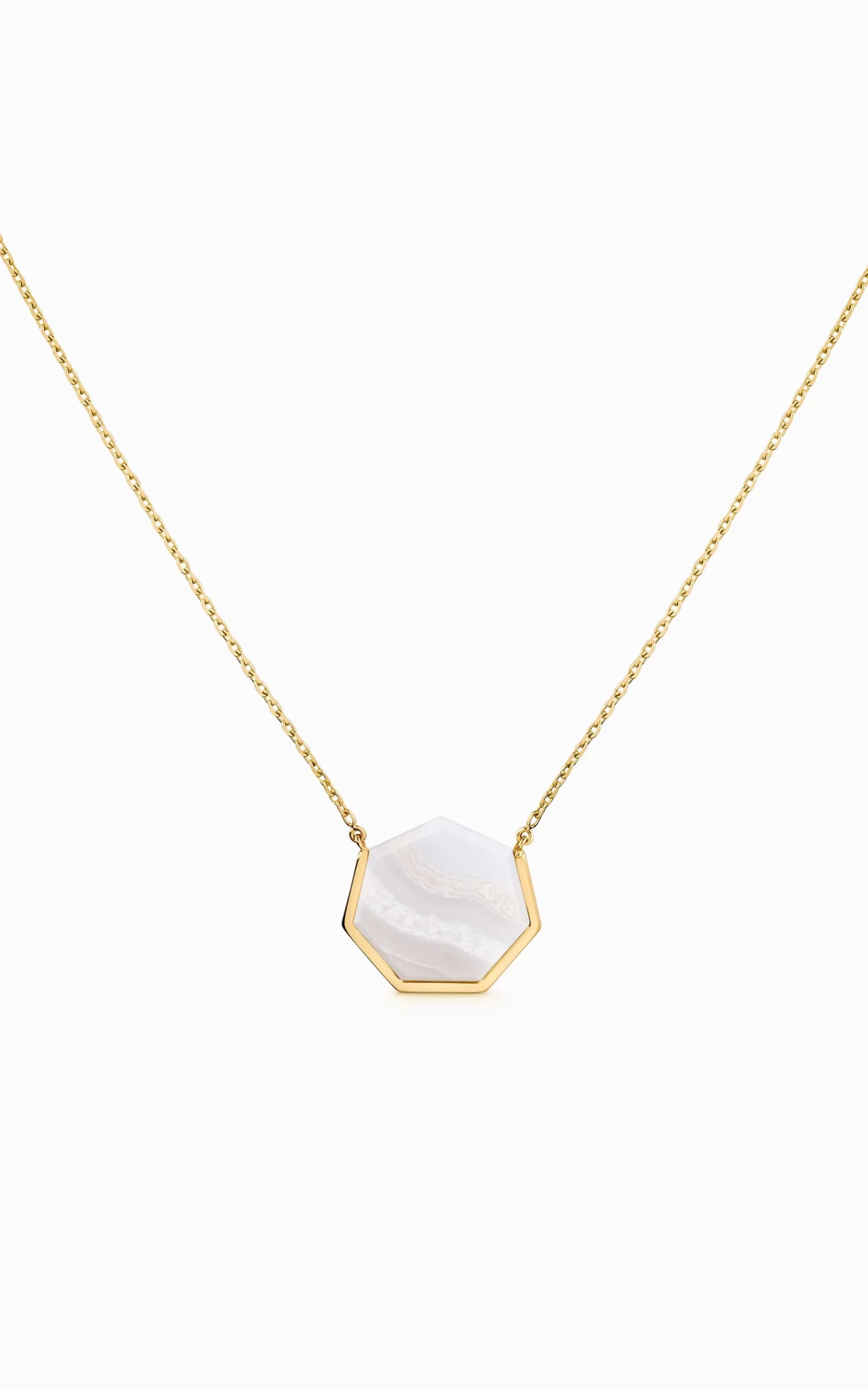 La seva forma heptagonal t茅 un significat profund: el n煤mero set ha estat considerat, al llarg de la hist貌ria, un s铆mbol de totalitat, intu茂ci贸 i creixement personal. A la part frontal de la joia, hi trobar脿s una pedra preciosa amb una energia 煤nica. Escull entre: