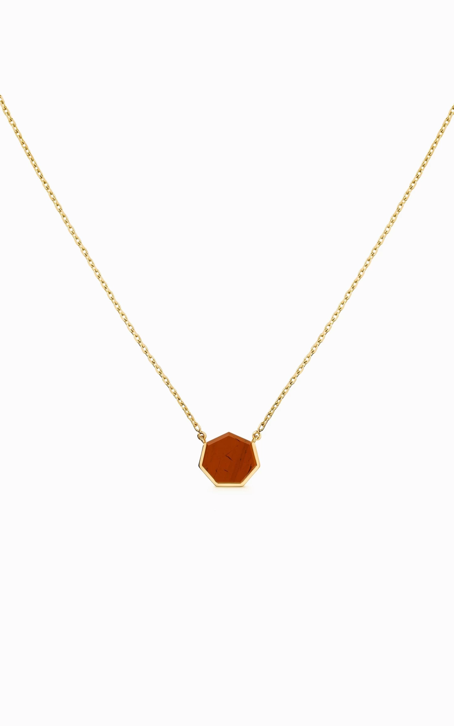 PENJOLL HEPTÀGON D’OR GROC AMB PEDRA PRECIOSA NATURAL
