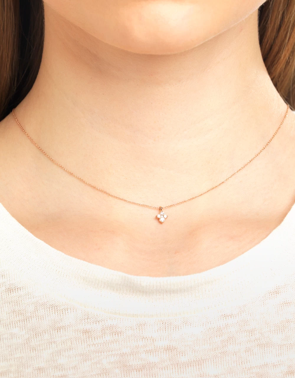 Quatre diamants, un d鈥檈lls m茅s gran que els altres, composen aquesta figura que evoca les fulles obertes d鈥檜n lliri. La simplicitat de la concepci贸 en el disseny d鈥檃quest motiu contrasta amb l鈥檈fecte que crea, que fa pensar en l鈥檈xuber脿ncia de les flors m茅s vistoses. En aquesta ocasi贸, Roosik & Co. el planteja com a penjoll, de manera que el motiu adquireix una centralitat total en l鈥檈scot. La s猫rie Lilium es completa amb altres peces que es poden combinar -arracades, anell, bra莽alet-, creant un conjunt de gran personalitat i atractiu.