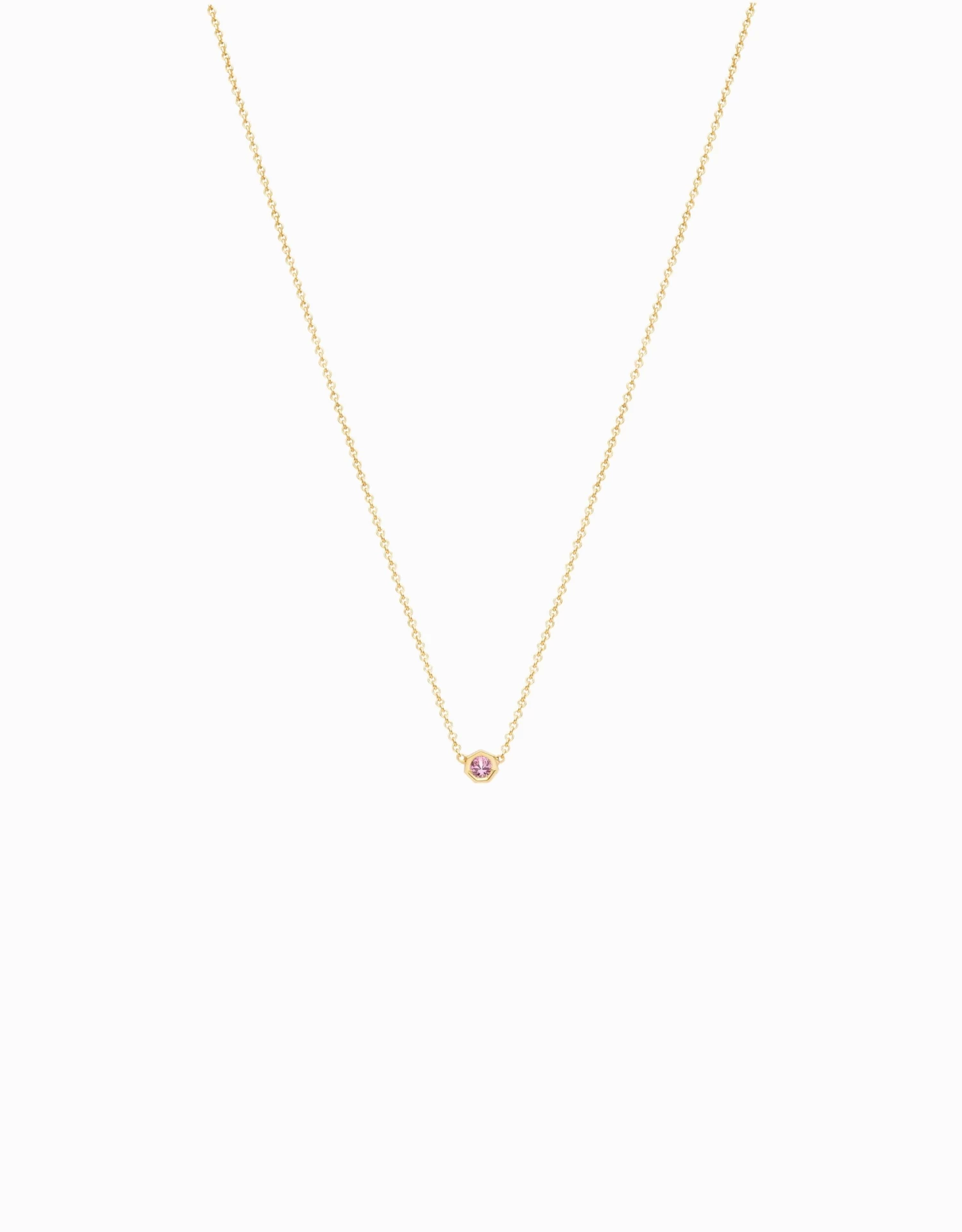 En aquest penjoll, un preciós safir rosa s’embolcalla d’un heptàgon d’or, la figura icònica de Roosik & Co. Una peça de joieria subtil i original per a dur-la cada dia i que alhora estarà a l’alçada de les ocasions més especials. Es pot dur sol o també combinat amb d’altres penjolls de la mateixa col·lecció amb diferent pedra preciosa: maragda, robí, aiguamarina, safir groc, safir blau i diamant. També es treballa amb 3 i 5 heptàgons i disposem de les polseres per a fer un bonic conjunt.