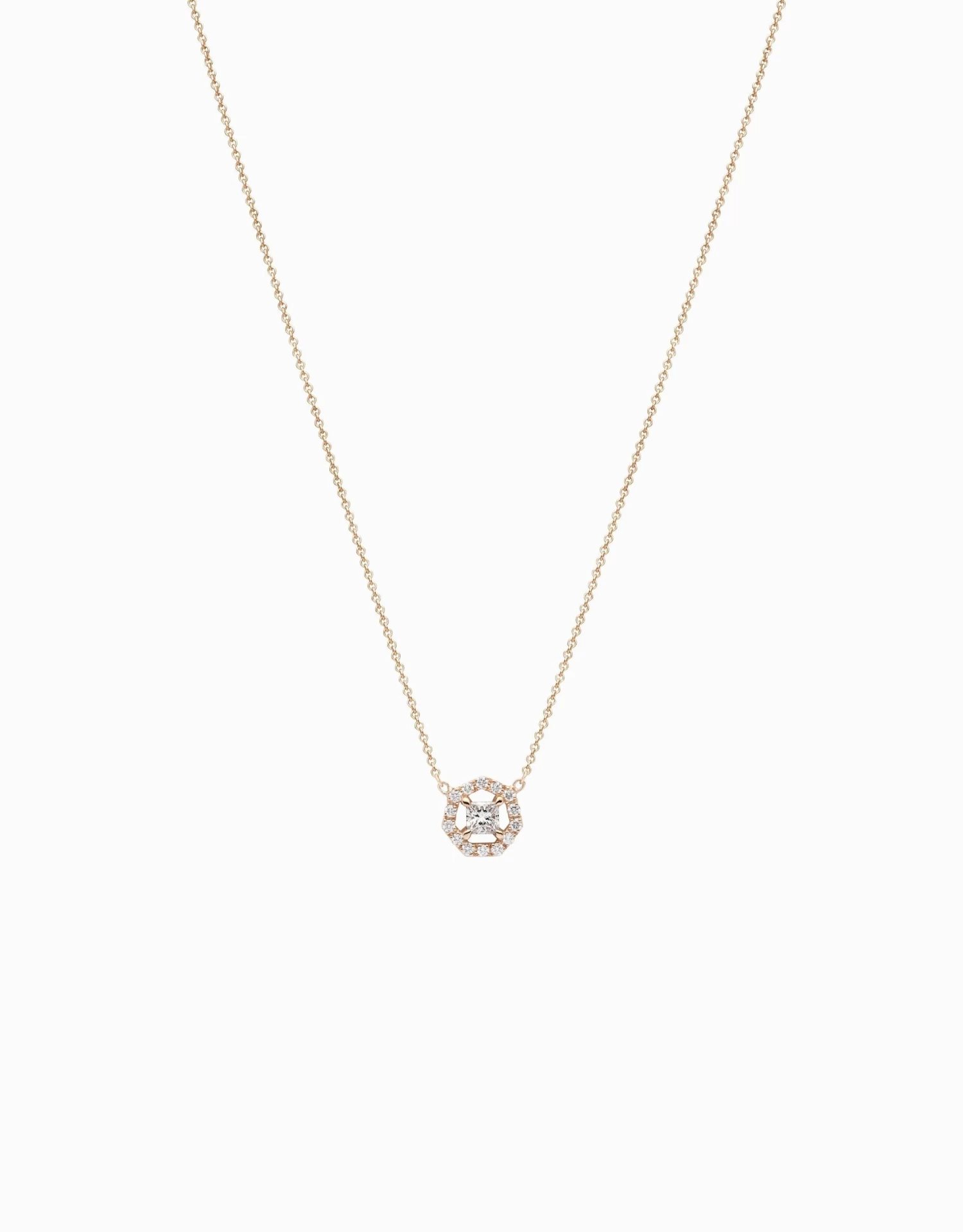 Un total de 14 diamants formen en aquestes penjoll la caracter铆stica composici贸 heptagonal que 茅s la icona inconfusible de la marca Roosik&Co. L鈥檋ept脿gon abra莽a un diamant en talla princesa de 0,20 quirats certificat per Jordi Rosich. En aquesta ocasi贸, Rosich ha treballat amb l鈥檕r rosa i els diamants per aportar feminitat i romanticisme a un disseny del tot actual, que forma un conjunt perfecte amb la polsera, l鈥檃nell i les arracades Vitruvik d鈥檕r rosa amb motiu hept脿gon i diamant.
