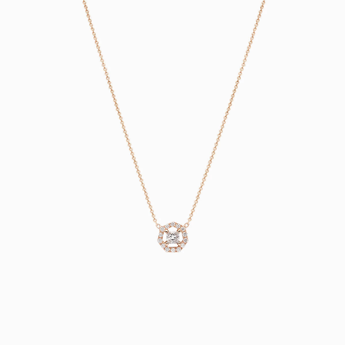 PENJOLL AMB DIAMANT TALLA PRINCESA I BRILLANTS EN OR ROSA