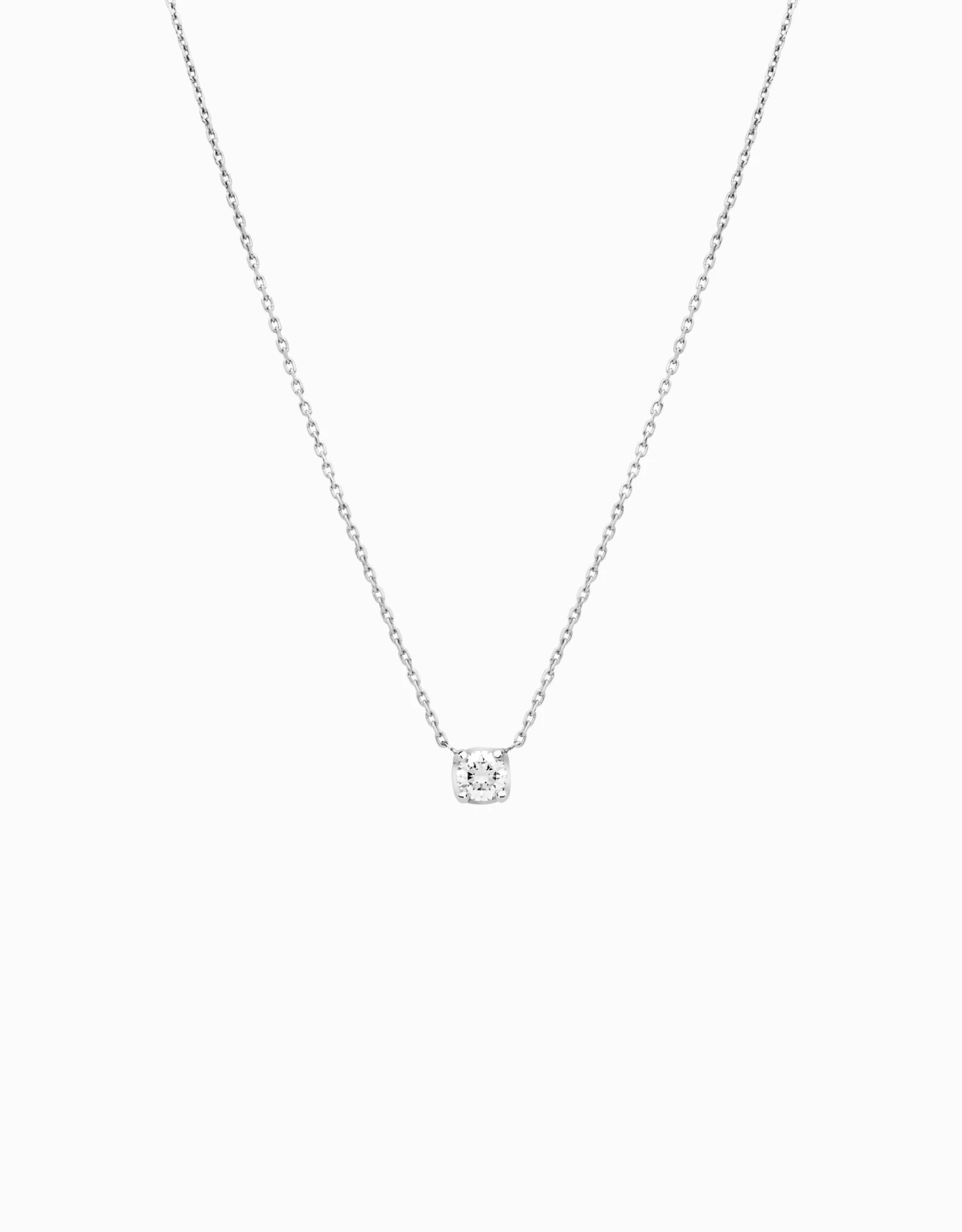 Aquest penjoll reuneix les característiques de la col·lecció Eternal de Roosik & Co, i s’emmarca en un estil clàssic i atemporal que fa d’aquestes joies un valor segur. El penjoll Solitaire, Jordi Rosich ha plantejat un únic diamant d’0,35 quirats que s’uneix a la cadena d’or blanc per dos punts de subjecció, un detall que dóna a aquesta peça un aire elegant i contemporani. El penjoll Solitaire està disponible en diamants de 0,10 a 1,00 quirats.