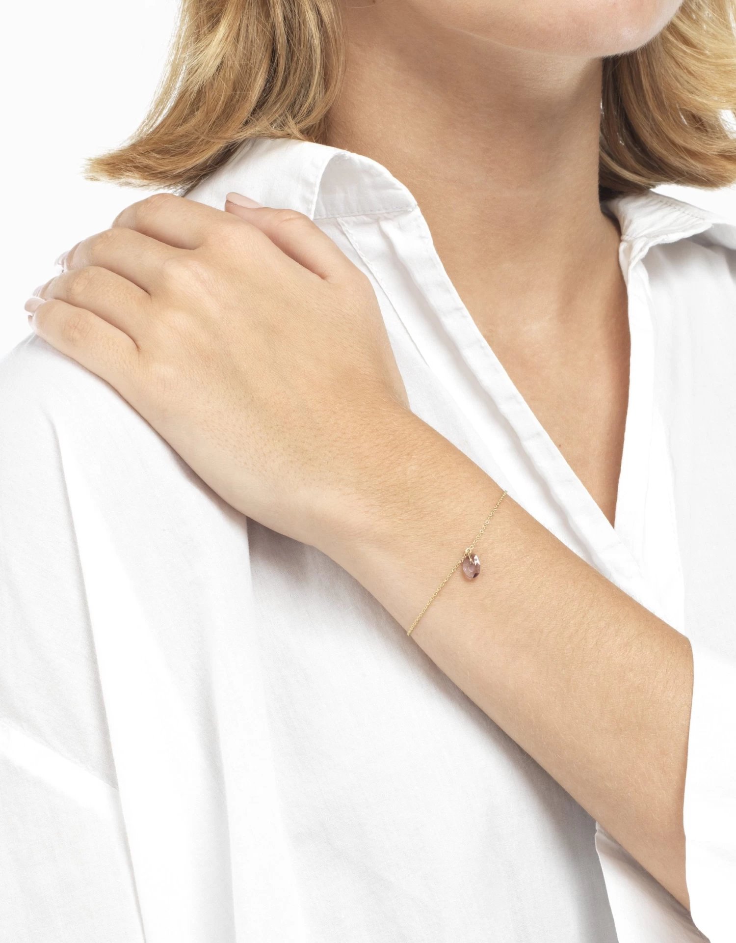 El granat penja d鈥檜na forma molt neta i minimalista d鈥檃questa polsera d鈥檕r groc de la col路lecci贸 Blossom de Roosik & Co. La pedra preciosa de color 茅s un detall vist贸s que ser脿 el complement perfecte per conjunts de tonalitats burdeus o granatoses, per貌 tamb茅 amb grisos, blancs i blau marins. Roosik & Co presenta tamb茅 aquesta joia en or blanc i rosa, aix铆 com amb altres pedres precioses. Roosik & Co treballa sempre amb gemmes naturals, que a la col路lecci贸 Blossom esdevenen l鈥檈lement central dels dissenys de Jordi Rosich.